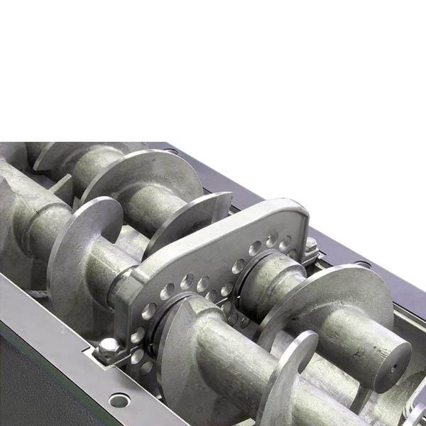 Sikkerheden er prioriteret højt med et dobbelt sikkerhedssystem, hvor en automatisk afbryder stopper strømmen, hvis sneglene bliver blotlagt under brug.Det aftagelige blandekammer giver hurtig adgang til rengøring og vedligeholdelse, hvilket holder nedetiden minimal.